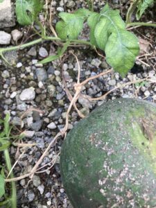 Gardening 庭のスイカを収穫 2025年9月24日 onatsu 庭に自生しているスイカ・・・ ついにツルが枯れました!!これは収穫のサイン^^ もう一玉目も順調です^^ 少し肌寒くなり掛けている昨今・・・暑い日に頂こうと思います。