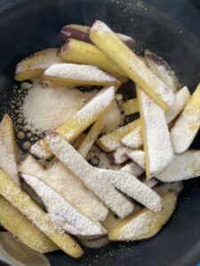 予熱で炒めて甜菜糖を満遍なく表面に行き渡らせて完成です!!