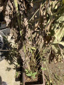 推定2m以上にも育ったキクイモ。大きくなればその分お水も沢山必要なはずですが。