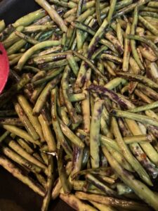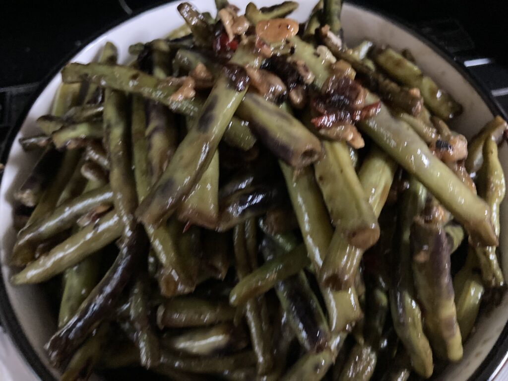 豆の表面に焦げ目が付いてきたら先程の合わせ調味料を加えてよく絡めます。