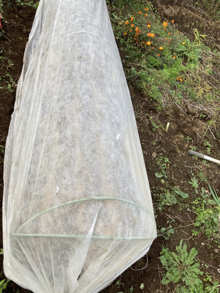 こちらも寒いので不織布トンネルで保温します♪