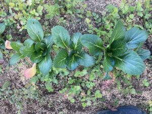 コマツナも根は残して外側の葉から収穫しています。弱った部分は紅葉?というか枯れてきましたが元気な部分は色も濃くて元気そう^^
