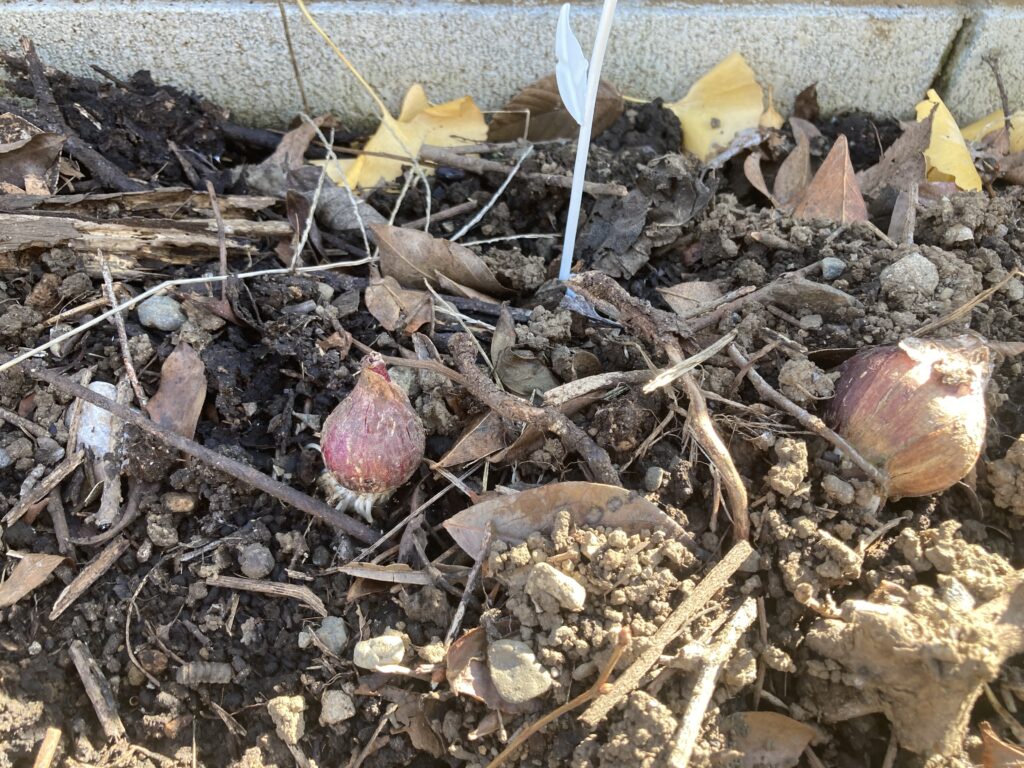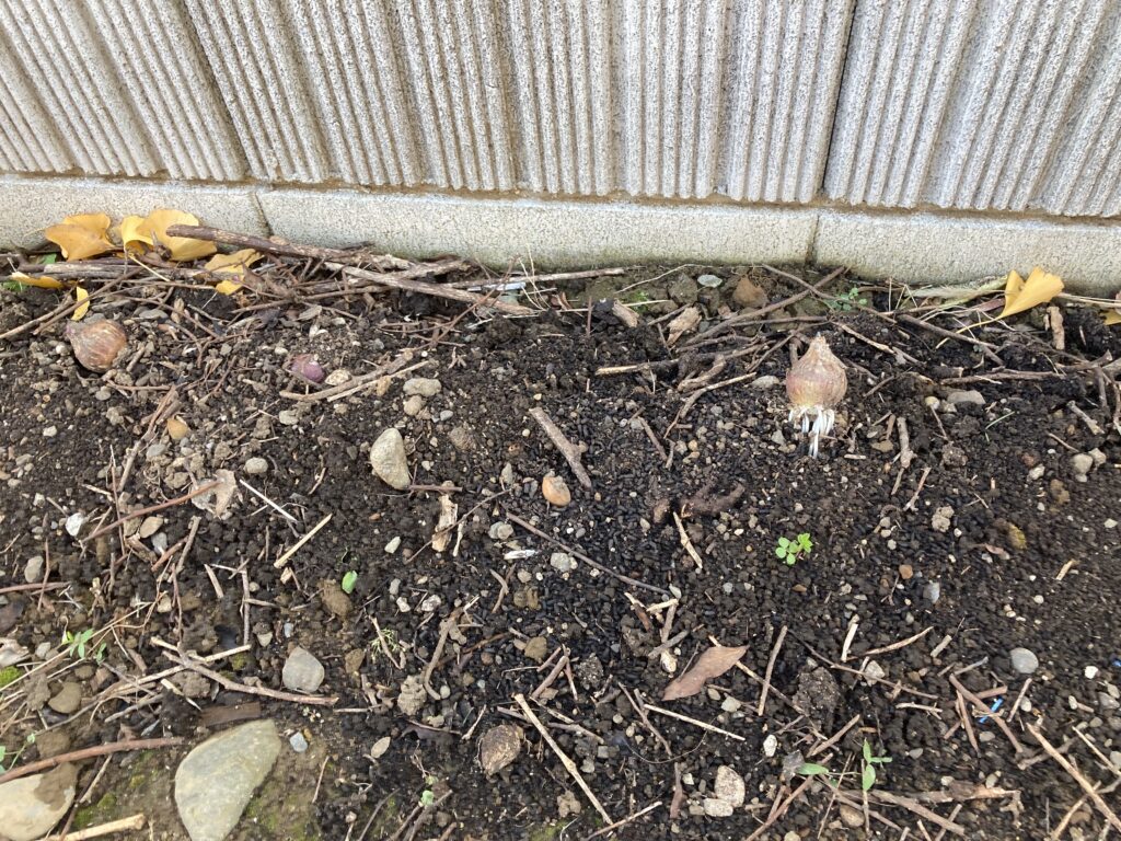 Cooking 埋めても埋めてもチューリップ 2025年12月23日 onatsu 少し前にも球根が地上に飛び出していたので上から土をかけました。 なのに・・・1週間ほど経つとまた地上に出てきてしまいました。 チューリップ以外は地中にいるまま発芽してますがチューリップだけがなぜか出てきてしまいます。 一応植える箇所の土は追肥して耕しているはずですが足りなかったのかな?? また上から土をかけて様子を見ることにします。