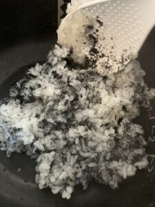 冷ましたご飯お茶碗1杯に麻炭を小匙2/1混ぜ込みました。