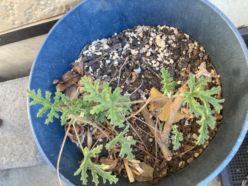 去年のまだ寒い時期に生花から挿し木したゼラニウム。