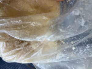 生地が混ざったら一まとまりにして冷蔵庫か冬なら寒い場所にて30分以上寝かせます。