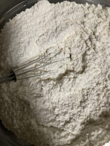 ホイッパーで粉類をしっかり混ぜ合わせます。