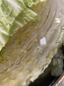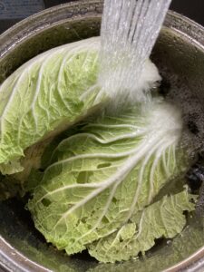 4等分に切った白菜を綺麗に水洗いしていきます。