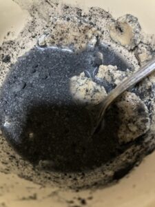 酒粕は混ざりやすいように水に溶きます。ついでに麻炭も一緒に混ぜ混ぜ・・・
