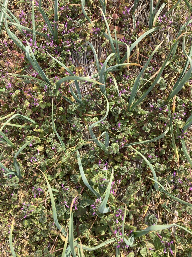 ニンニクの隙間にホトケノザがビッシリ・・・