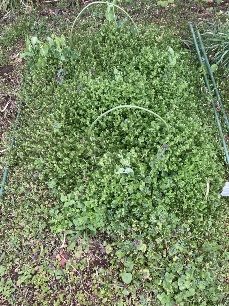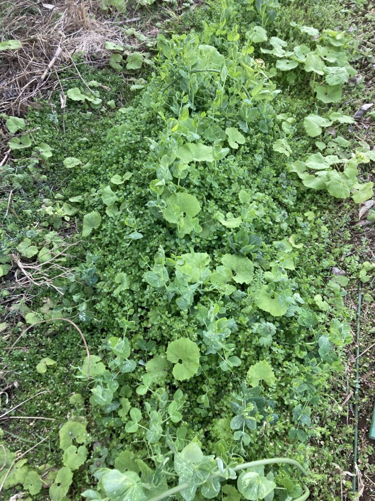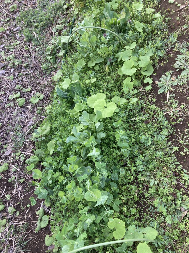 暖かく過ごしていたようで不織布の掛かっていた箇所は雑草や侵食してきたフキもボーボーです。