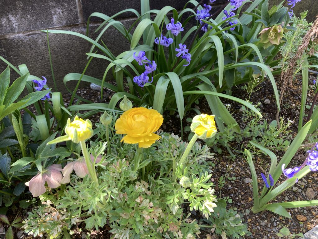 スイセン、クリスマスローズ。そして去年から育てているラナンキュラス。