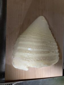 筍を半分に切ったらスライスしていきます。