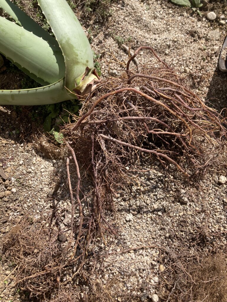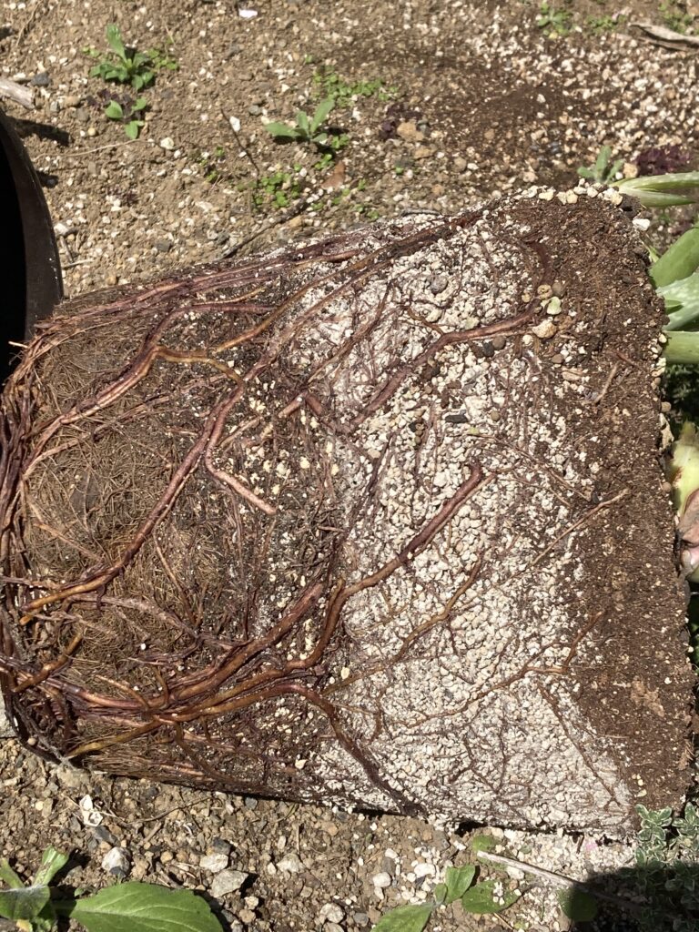 案の定ぎちぎち・・・根をほぐしていくと枯れてる箇所も多いですね。