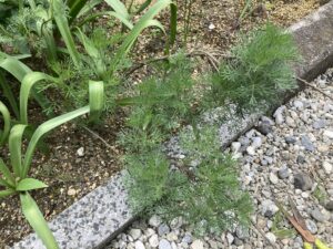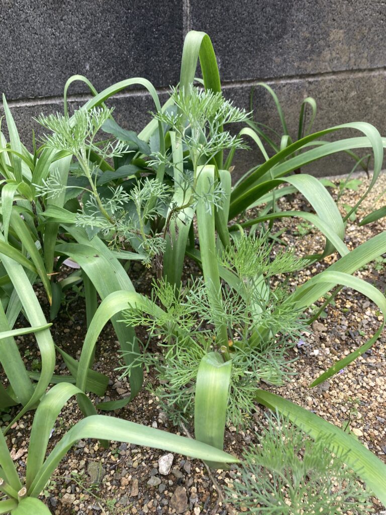 暖かくなって伸びてきたらこの通り。花壇からはみ出て歩くと足に当たるので剪定しようと思います。